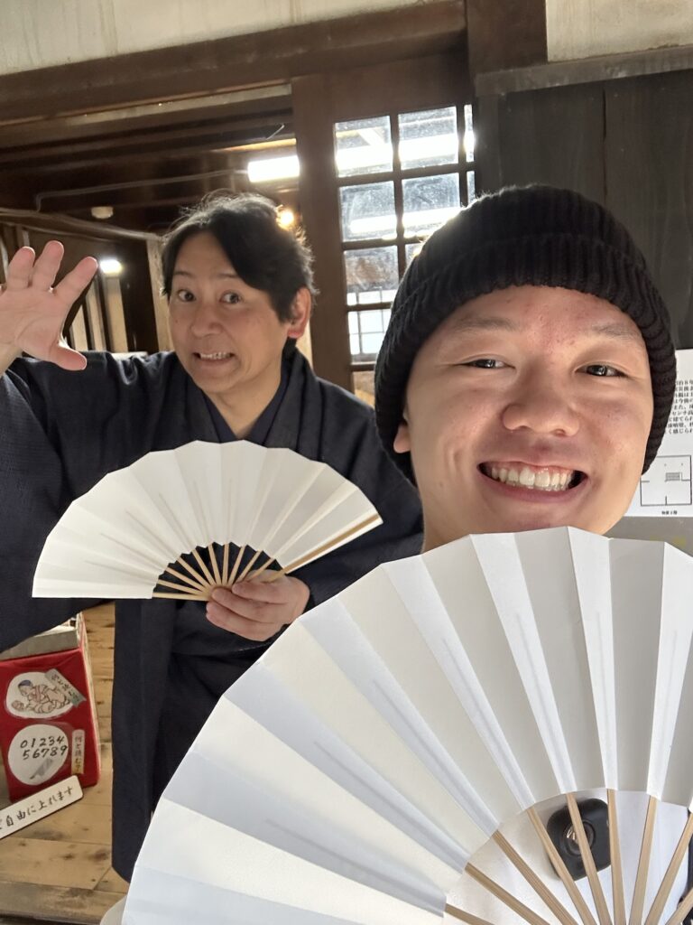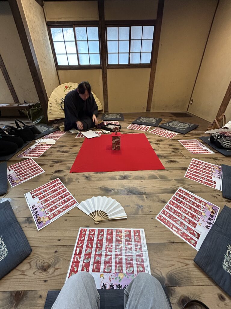 文化財?が何かに登録されているらしい建物に入ってみると、中には元気な声で「投扇興(とうせんきょう)」という昔の遊びを説明しているお兄さんがいた。